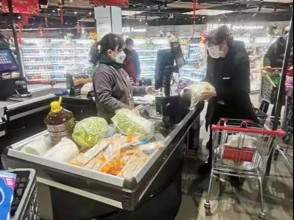 随后,熊小清和同伴就卡着点急急忙忙地出门了。目的地是哪?——越秀·星汇云锦小区旁的生鲜超市。这段时间以来,为业主们代购生活物资已经成为物服管家们最重头的一项工作,超市限流,她们要在新鲜菜品清空前排上队、赶上趟儿。