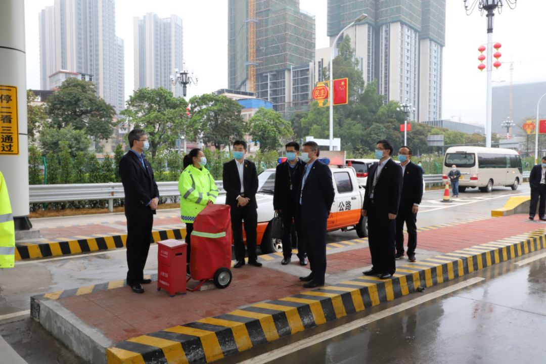 越秀集团管委会主任助理、越秀交通总经理何柏青,越秀集团管委会主任助理、越秀交通党委书记谢延会及北二环公司有关人员陪同检查。