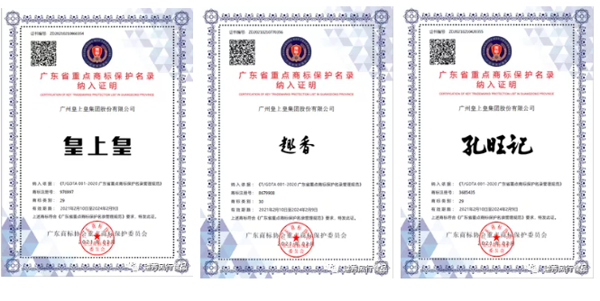 皇上皇、趣香、孔旺记成功纳入广东省重点商标保护名录