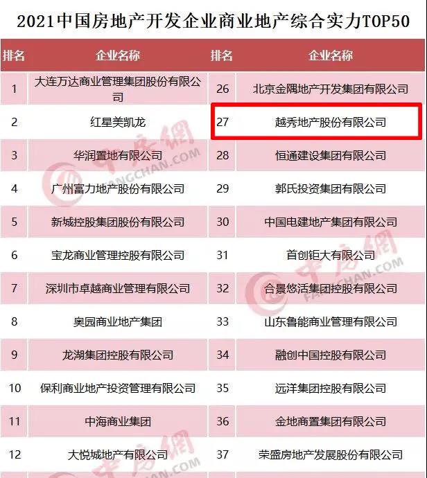 此次测评,越秀地产还凭借旗下商业板块——越秀商投,进入了“2021中国房地产开发企业商业地产综合实力TOP30”名单。