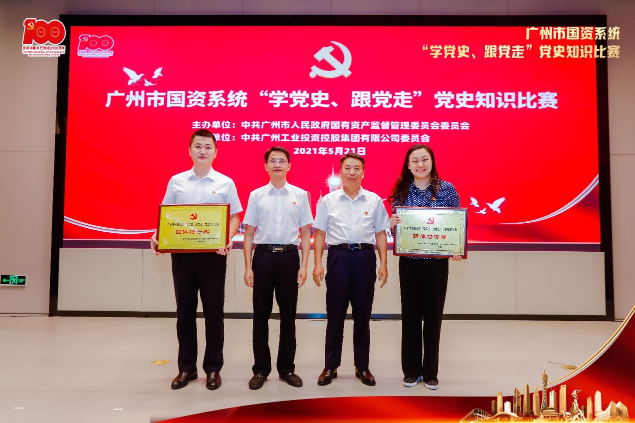5月21日,由市国资委党委举办的“学党史、跟党走”党史知识比赛在广州工控集团报告厅举行,来自全市国资系统的29个代表队同台竞技,经过激烈角逐,由越秀地产张学平和越秀交通吴庆一、杨帅、倪娜等4人组成的越秀集团代表队脱颖而出,获得了团体赛特等奖的优异成绩。