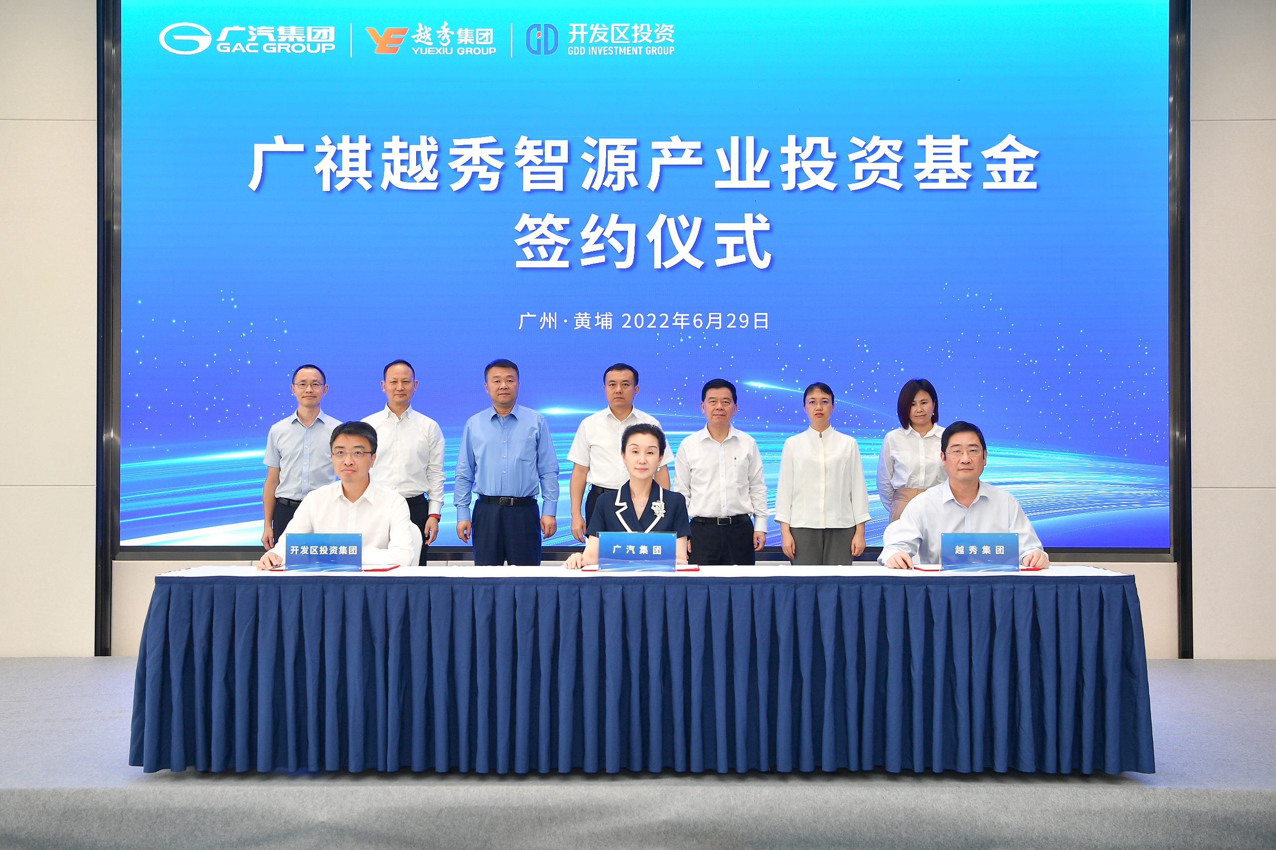 广州市委常委、黄埔区委书记、广州开发区党工委书记、管委会主任陈勇,黄埔区区长、广州开发区管委会常务副主任冼银崧,越秀集团党委书记、董事长张招兴,广汽集团党委书记、董事长曾庆洪,广州开发区党工委委员胡德开,黄埔区副区长徐丹,开发区投资集团董事长张晓中见证签约。开发区相关部门、广汽资本、越秀金控、开发区投资相关领导参加。