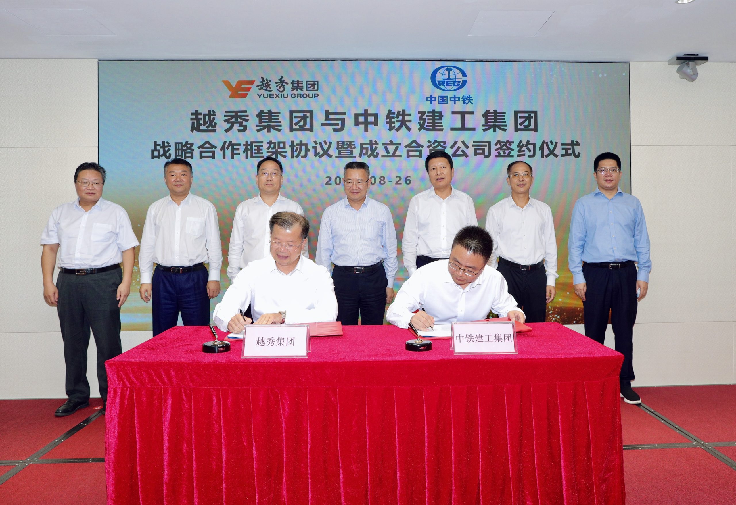 8月26日,越秀集团与中铁建工集团在广州国际金融中心举行战略合作框架协议暨成立合资公司签约仪式。广州市副市长、市政府秘书长陈杰,市住房和城乡建设局局长王宏伟,市国资委主任陈德俊,番禺区区长叶珊瑚,中铁建工集团党委书记、董事长王玉生、越秀集团党委书记、董事长张招兴出席仪式并见证签约。越秀集团管理咨询协调委员会副主任委员林昭远与中铁建工集团总经理何晔庭代表双方签约。